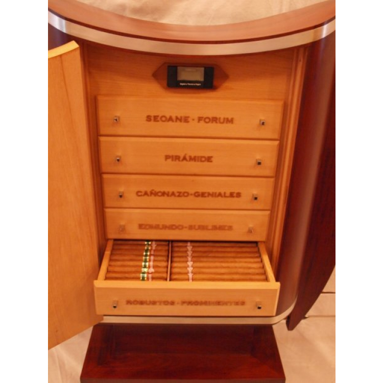 Fiel a la imagen de este la marca, este mueble humidor se caracteriza por la sencillez en el diseño, sin dejar de ser moderno, lujoso y funcional, elementos que le aportan elegancia visual y esmerada manufactura.