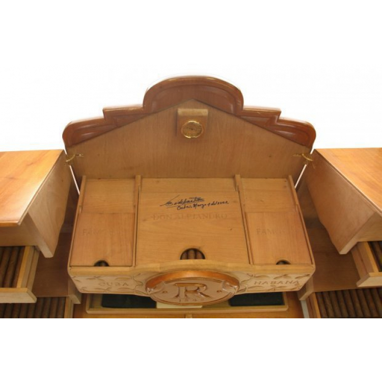 Humidor que recrea el segell de la marca en un moble d´estilo antic, obra de l´artesá Julio César Garrido Correa. Al seu exterior té tallada un cultiu de tabacs i el segell de la marca, i a l´obrir-se apareix l´anell tallt en relleu. Està elaborat totalment a má en cedre massis i inclou un encendedor de la firma Dupont am el logotip de la marca. Conté 150 cigars, 25 de cadascuna de les vitoles següents: Don Alejando, Clásicos, Familiares, Famosos, Únicos i una altra vitola selecionada especialmente per aquesta ocasió.