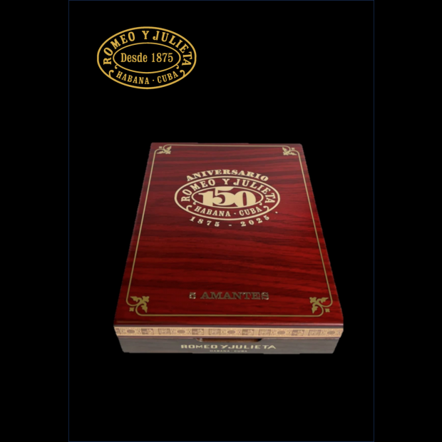 Una característica distintiva dels Amantes és la seva anella exclusiva, que llueix de forma prominent el número “150” al centre, marcant l'aniversari. A més, una anella secundària de Romeo i Julieta envolta el peu del cigar, realçant la seva elegant presentació.