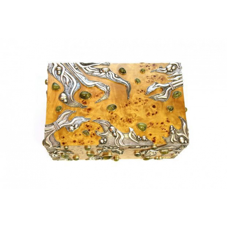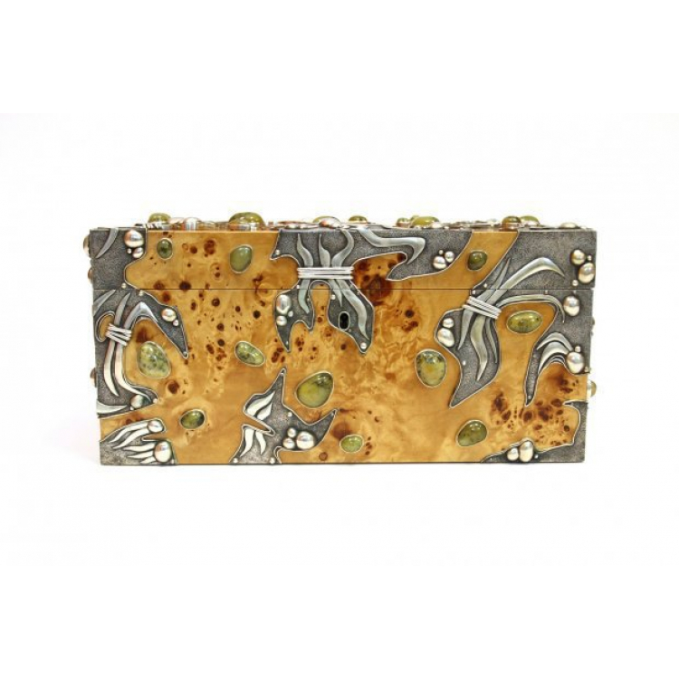 C'est un humidor crée par le cèlébre maître orfèvre sculpteur Pepe Rafart cette oeuvre unique démontre en plus la pureté technique du style très personnel, l'originalité, l'exellence de l'esthétique ainsi que la maitrise du travail de l'orfèvre réalisé par un authentique artiste en Arts Plastiques.